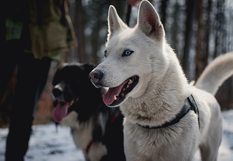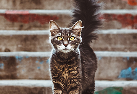 When we picture a happy dog, there’s usually a wagging tail in that imagery. Generally, this is true that a wagging tail is a good sign, but there is more to this picture that is helpful to know. When a dog’s tail is horizontal and wagging from side-to-side this is a safer/happier pup. If the wagging tail is vertical and ‘stiff’ in appearance, use caution. A straight up or straight out unmoving tail is an indicator that the dog is ‘on point’ in a more defensive stance, and a tucked tail is a sign that the dog is either scared or getting ready to make a more aggressive move. Cats’ tails when upwards in the shape of a question mark are telling us that they’re alert, curious, and approachable. Any rapid flicking of the tip of the tail, thumping, or a ‘puffed’ appearance should relay a warning to you to stay away.