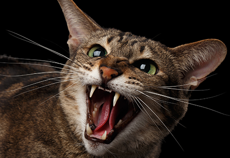 Say cheese! Some dogs ‘smile’ because they ARE truly happy, but others only show their teeth when they’re on the defense, and cats generally don’t open their mouths to pleasantly greet you. Any raising of lips, baring of teeth, open mouthed hissing, etc. are a very clear indicator that this meet & greet is heading south! Relaxed dogs may have an open mouth, but their tongue will be gently lolling out, and their overall demeanor will also appear calm.