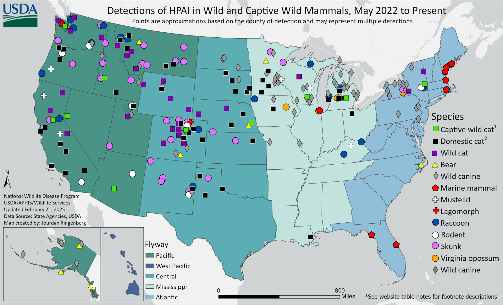 USDA Detections of HPAI in Wild and Captive Wild Mammals as of 2/24/25: