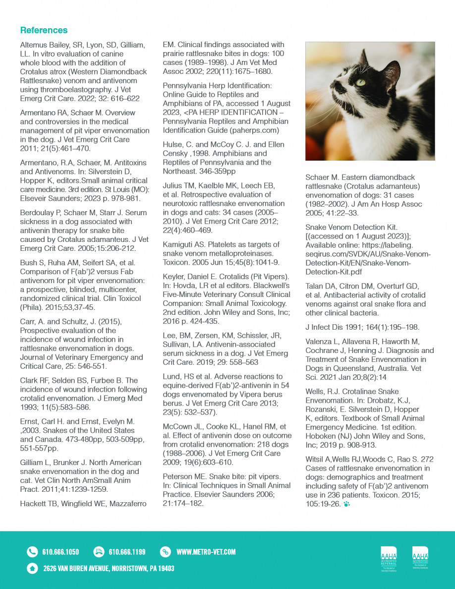 It is estimated that up to 100,000 venomous snakebites affecting dogs and cats occur each year, with a mortality rate of anywhere between 1 to 30% (Peterson 2006 and Wells 2023).