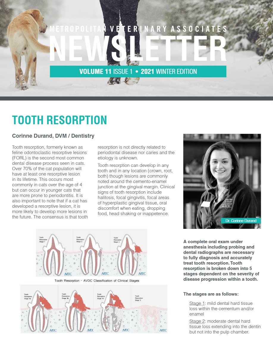 Tooth resorption, formerly known as feline odontoclastic resorptive lesions (FORL) is the second most common dental disease process seen in cats. Over 70% of the cat population will have at least one resorptive lesion in its lifetime. This occurs most commonly in cats over the age of 4 but can occur in younger cats that are more prone to periodontitis.